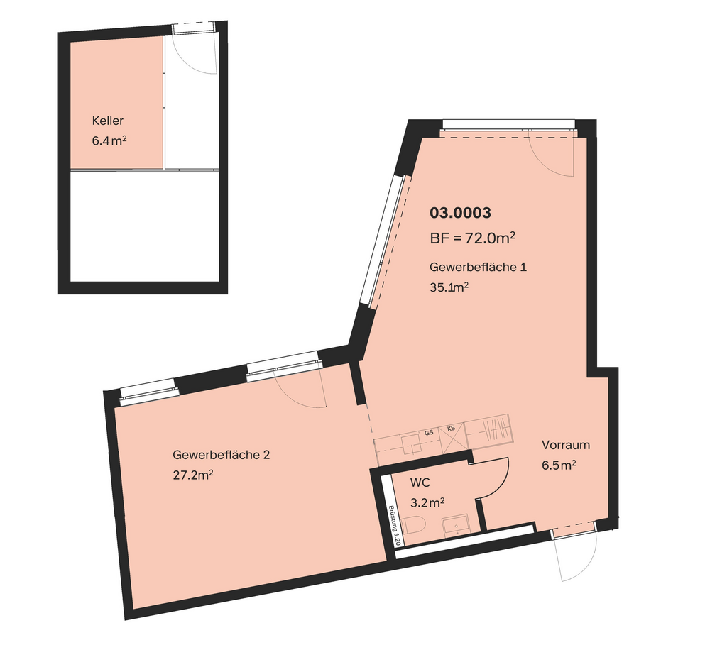 - Raumhöhe 3.56 m bzw. 2.56 m