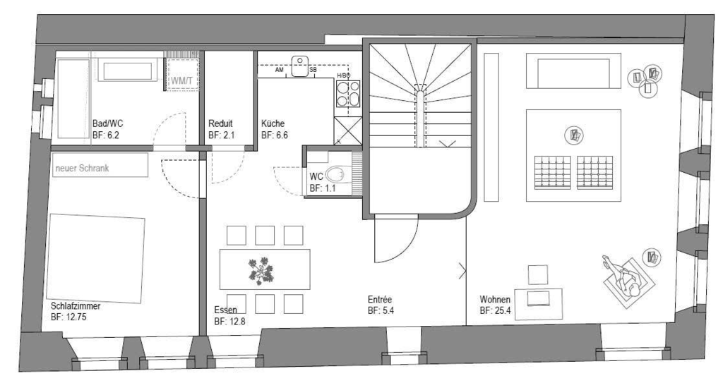 Diese Wohnung verfügt weder über einen Balkon noch einen Lift.