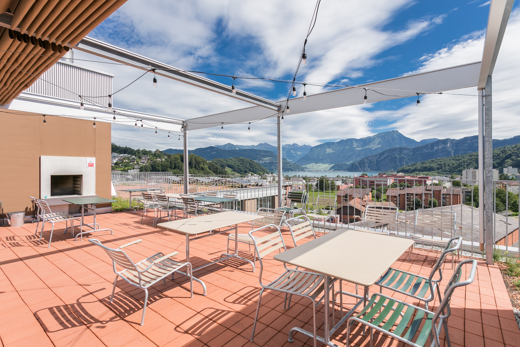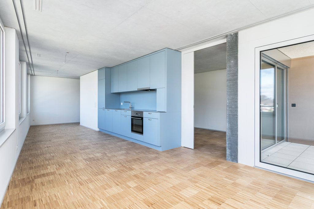 Für Ihre Wohnqualität: - Helle Räumlichkeiten - Küche mit moderner Ausstattung - Wohnen/Essen/Schlafen mit Parkettboden - Dusche/WC mit Feinsteinzeugplatten - Waschmaschine/Tumbler in der Wohnung - Loggia - Eingangsbereich mit Lobby und Gemeinschaftsnutzungen - Grosszügige Dachterrasse mit Cheminée zur Mitbenutzung - Mobilitätspoint mit E-Bikes, E-Roller und E-Autos zur kostenpflichtigen Mitbenutzung