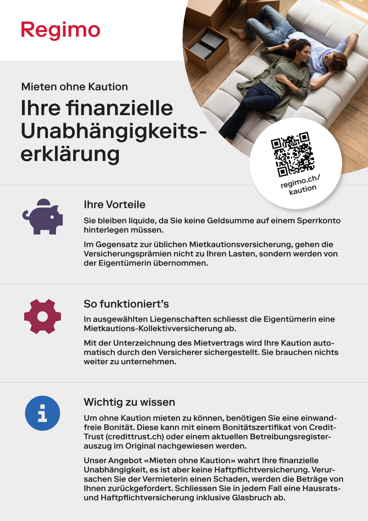 Mieten ohne Kaution: Für dieses Mietobjekt ist kein Mietzinsdepot zu leisten.