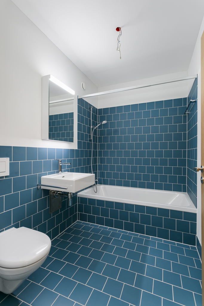 - Bad/WC und WC/Dusche mit Feinsteinzeugplatten